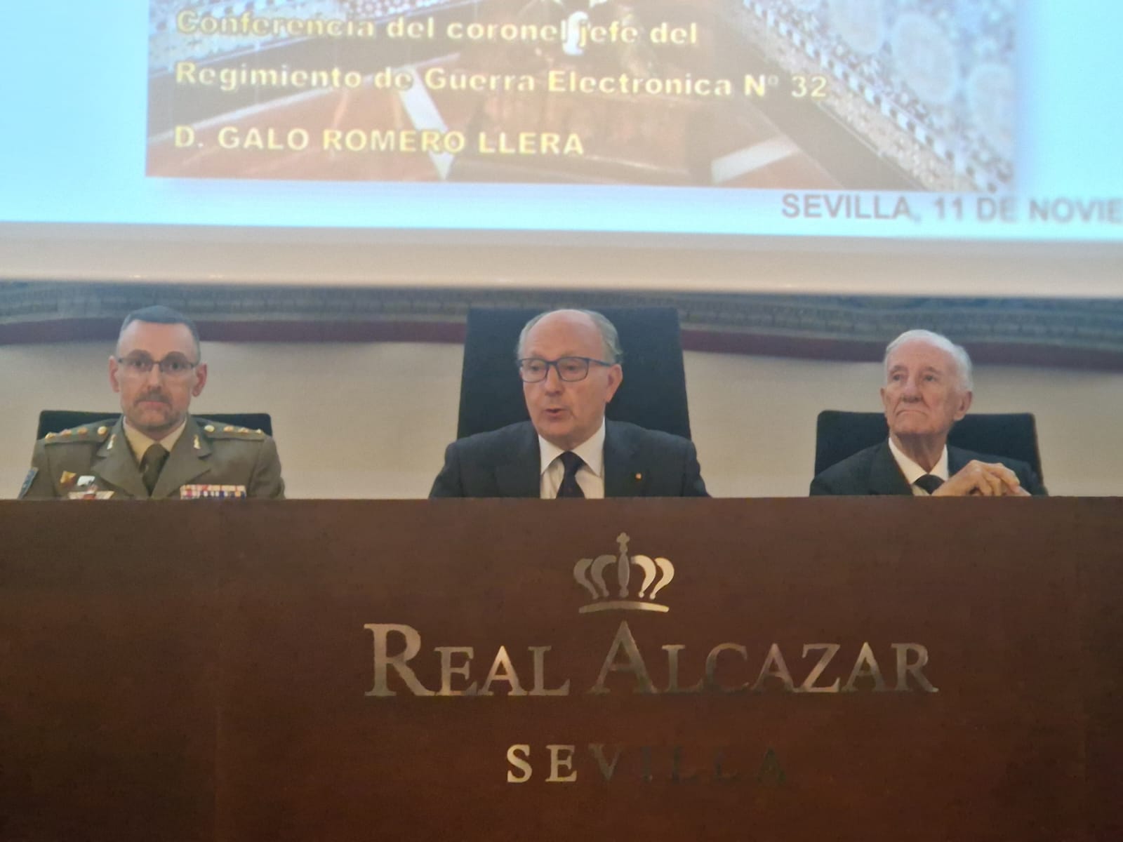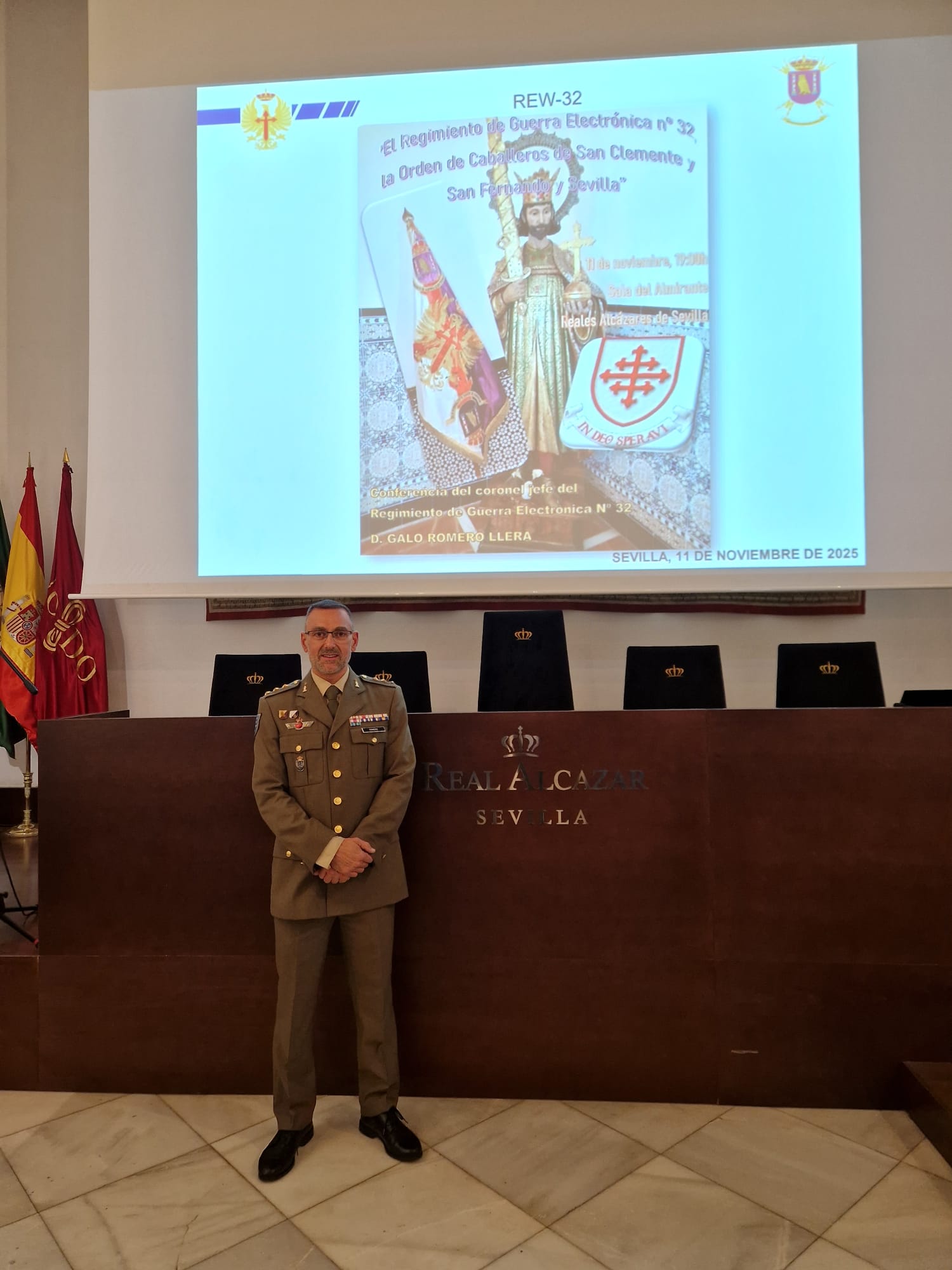 El día 11 de Noviembre y dentro del marco de Conferencias Anuales de la Orden, se impartió en el Real Alcázar de Sevilla, en el salón Almirante, la conferencia que lleva por título “El Regimiento de Guerra Electrónica, la Orden de San Clemente y San Fernando y Sevilla”, a cargo del Coronel Jefe del Regimiento de Guerra Electrónica número 32, Ilmo. Sr. D. Galo Romero y Llera.